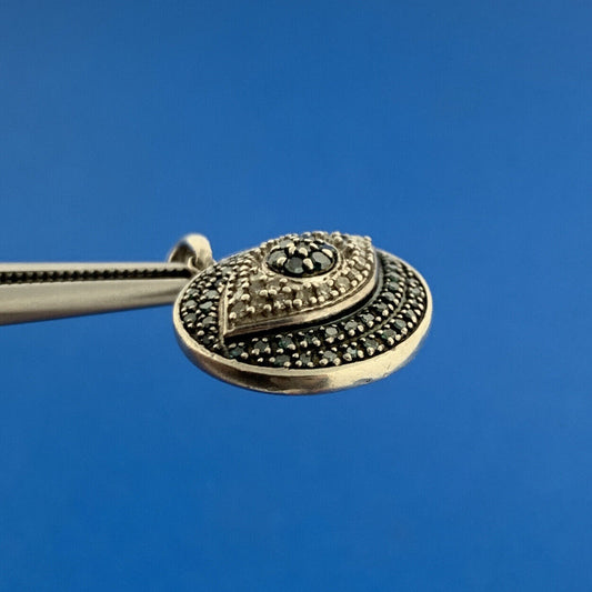Designer 925 Sterling Silver Blue Sapphire Diamond All Seeing Evil Eye Pendant