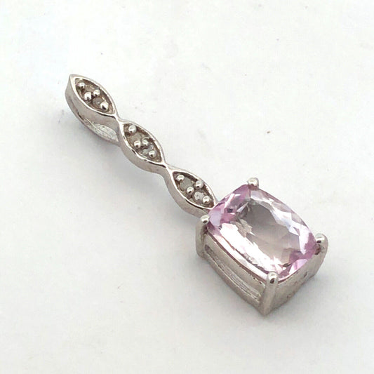 Designer TGGC 925 Sterling Silver Rectangle White Amethyst White Topaz Pendant