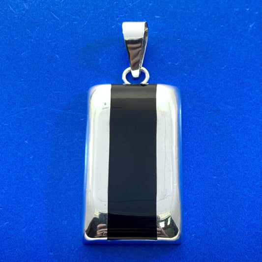 Designer ATI Mexico 925 Sterling Silver Black Enamel Rectangle Statement Pendant