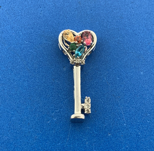 Designer 925 Sterling Silver Multi Gemstone Diamond Mothers Heart Key Pendant
