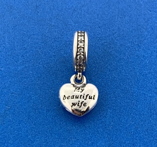 Authentic PANDORA 925 Sterling Silver CZ My Beautiful Wife 791524CZ Dangle Charm