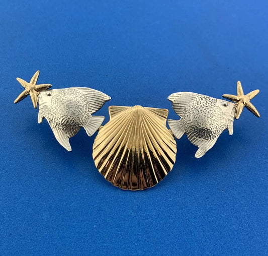 Courtney Peterson 925 Sterling Silver Two Tone Fish Shell Ocean Slide Pendant