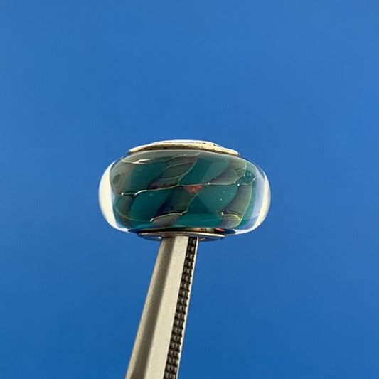 Chamilia 925 Sterling Silver Aqua Purple Striped Murano Glass Bracelet Charm