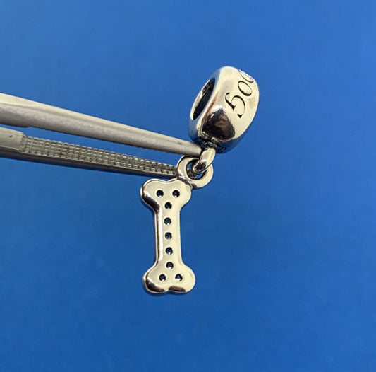 PANDORA Sterling Silver Cubic Zirconia 791263CZ Dog Bone Dangle Bracelet Charm