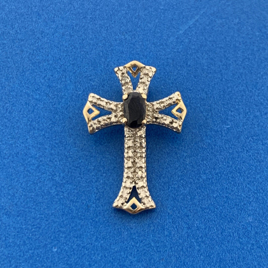 Designer 925 Sterling Silver Vermeil Oval Sapphire Two Tone Cross Pendant