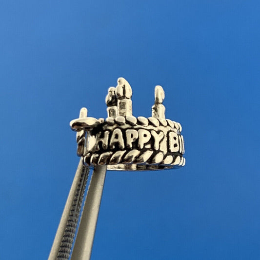 Estate 925 Sterling Silver Happy Birthday Cake Candles Bracelet Dangle Charm