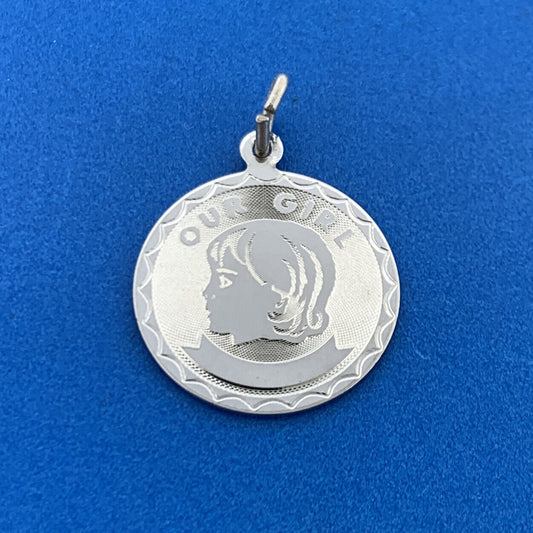 Vintage 925 Sterling Silver Our Girl Textured Engravable Bracelet Circle Charm