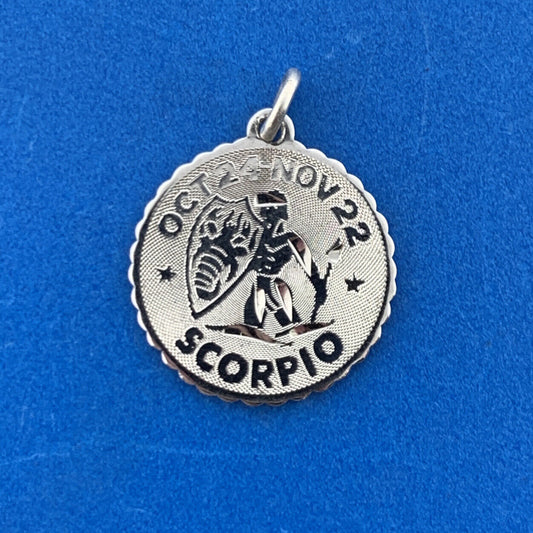 Vintage Sterling Silver Toned Scorpio Zodiac Circle Dangle Pendant