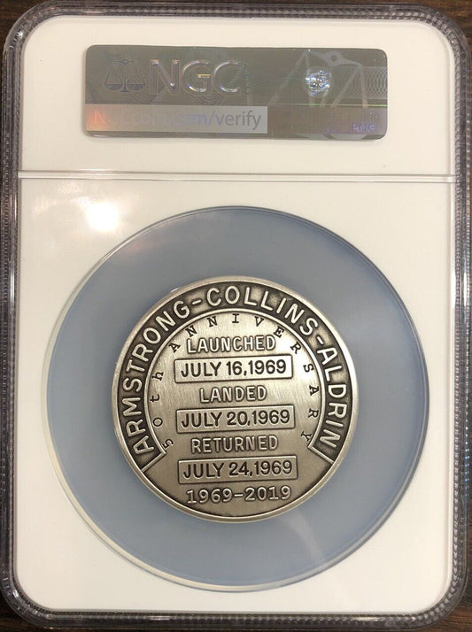 2019 Apollo 11 50th Anniversary Robbins Restrike 5oz 999 Silver NGC MS70 Medal