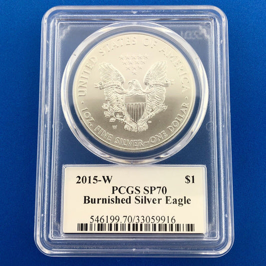 2015 W Burnished 1 Oz American Silver Eagle John Mercanti Label PCGS SP70