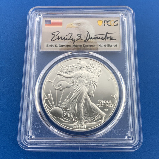 2021 Silver Eagle 999 Fine Silver PCGS MS 70 Type 2 First Strike Emily Damastra