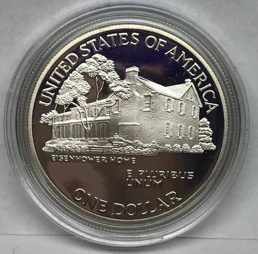 1990 P United States Eisenhower Centennial Commemorative Proof Silver $ OMP/COA