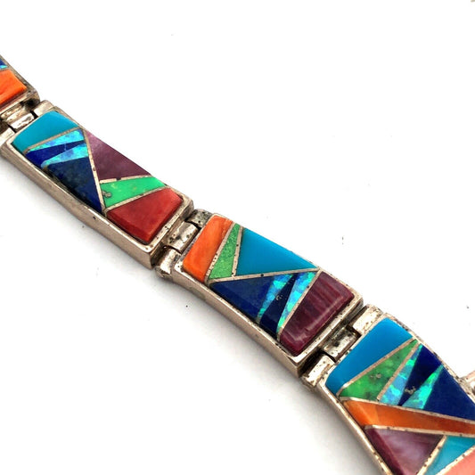 Calvin Begay Navajo Sterling Silver Gemstone Inlay Statement Collar Necklace