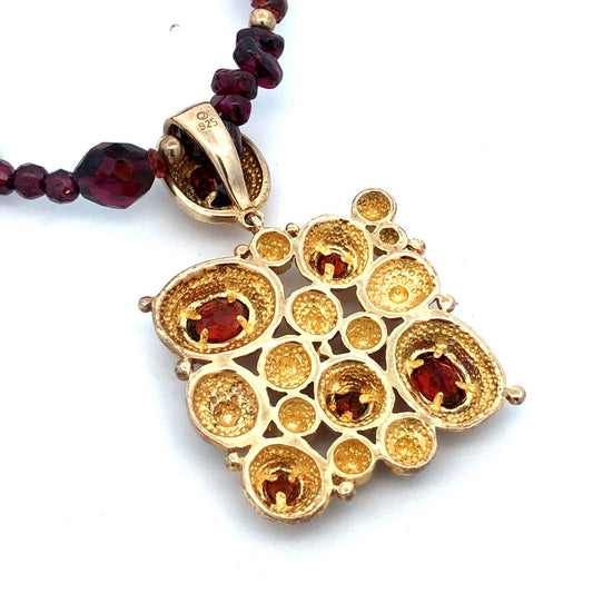 Vintage 925 Sterling Silver Gold Vermeil Amethyst Beaded Garnet Necklace