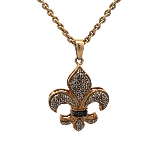 925 Sterling Silver Gold Vermeil Round Diamond Fleur De Lis Necklace