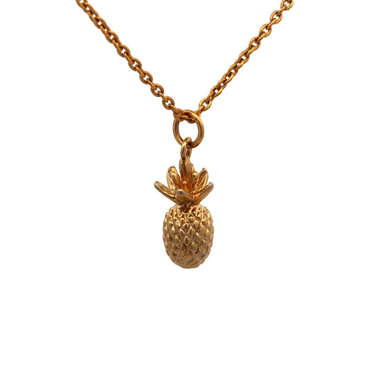 925 Sterling Silver Gold Vermeil Estate Pineapple Good Luck Pendan Necklace