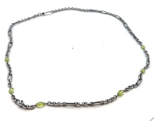 Designer Lori Bonn 925 Sterling Silver Oval Peridot Birthstone Station Necklace