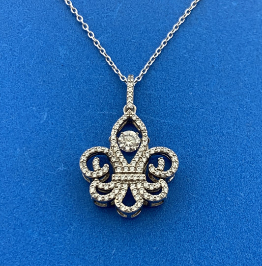 Designer 925 Sterling Silver Floating Cubic Zirconia Fleur De Lis Necklace
