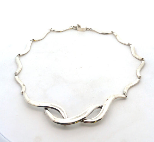 Vintage Mexico 925 Sterling Silver Modernist Curved Bar Link Choker Necklace