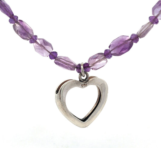 Beaded Amethyst 925 Sterling Silver Heart Picture Pendant Toggle Necklace
