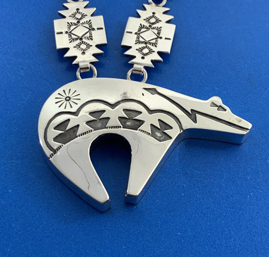 Native American 925 Sterling Silver Concho Bear Statement Storyteller Necklace
