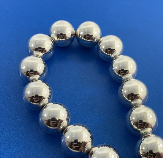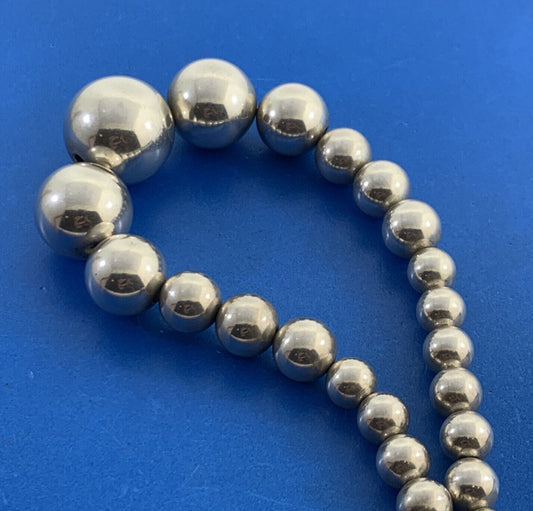 Vintage 925 Sterling Silver Graduated Silver Bead Statement Necklace