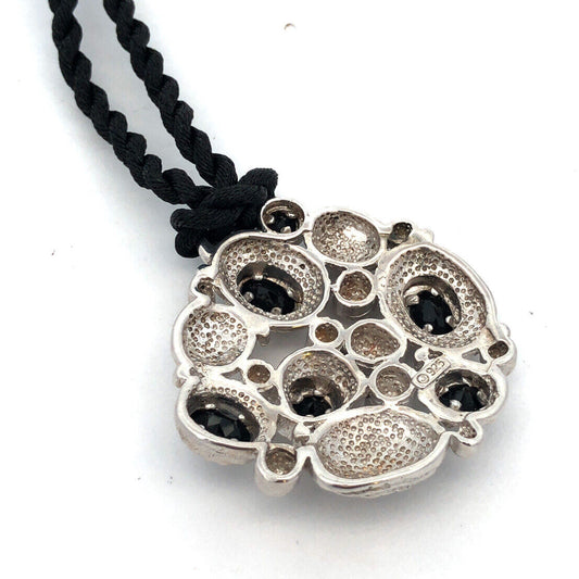 Designer 925 Sterling Silver Black Onyx Textured Pendant Silk Chain Necklace