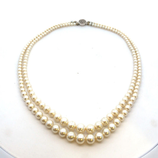 925 Sterling Silver Vintage Graduated Pearl Beaded Double Strand Necklace