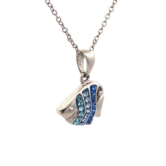 925 Sterling Silver Designer R Blue Cubic Zirconia Ocean Fish Pendant Necklace