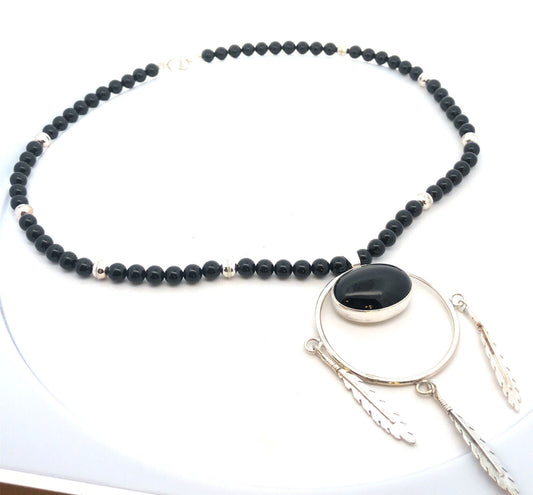Native American Charlie John CJ 925 Sterling Silver Black Onyx Pendant Necklace