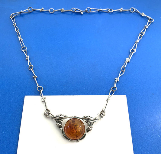 Designer 925 Sterling Silver Amber Courage Talisman Amulet Statement Necklace
