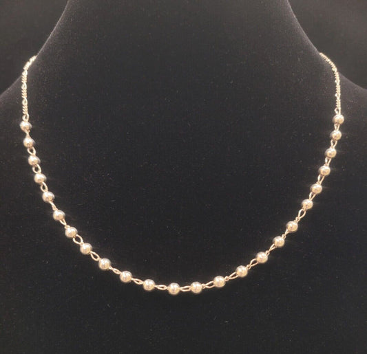 Designer Italy 925 Sterling Silver Bead Ball Station Figaro Link Chain Necklace