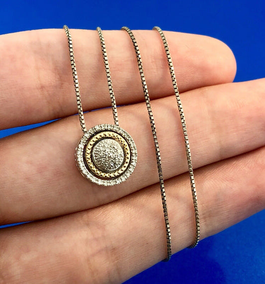 Designer AJ Sterling Silver 14K Yellow Gold Diamond Halo Infinity Necklace