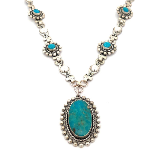 Vintage Native American 925 Sterling Silver Green Turquoise Statement Necklace