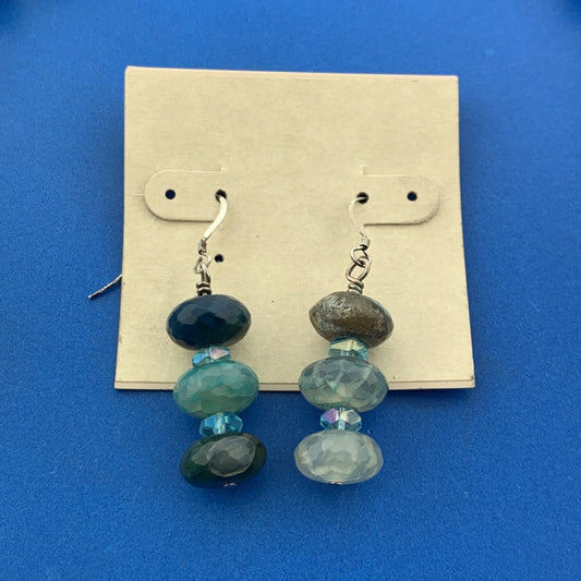 Artisan 925 Sterling Silver Agate Chalcedony Quartz Bead Necklace Earrings Set