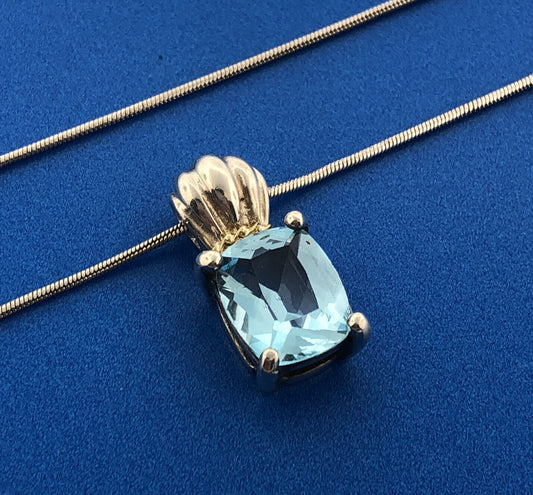 Designer CAA Sterling Silver 925 18K Yellow Gold Blue Topaz Necklace