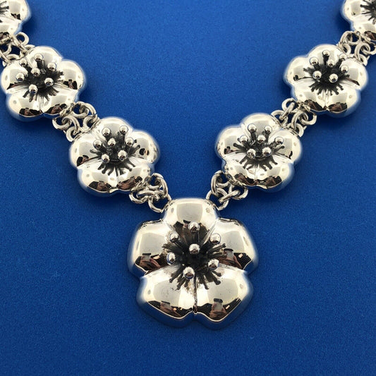 Designer GIL Mexican Sterling Silver 925 Floral Poppy Adjustable Toggle Necklace