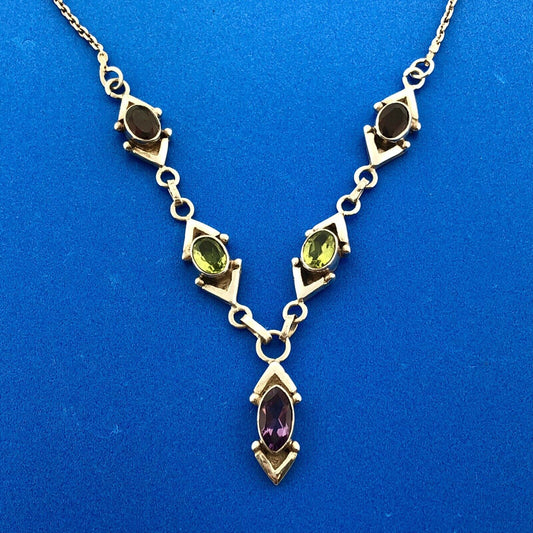 Stunning Sterling Silver 925 Peridot Garnet Amethyst 17" Toggle Necklace