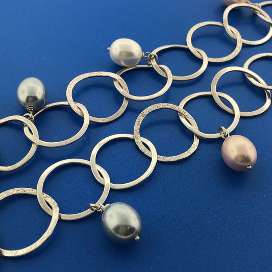 Splendori Italy 925 Sterling Silver Pink Grey White Pearl Statement Necklace NWT