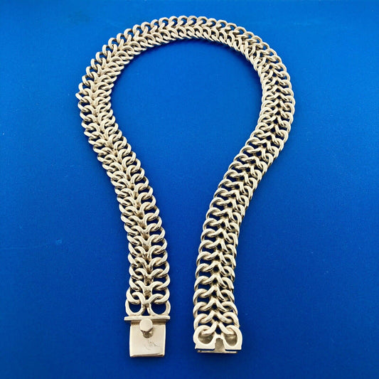 Signed Taxco 925 Sterling Silver Double Cable Link Statement Choker Necklace