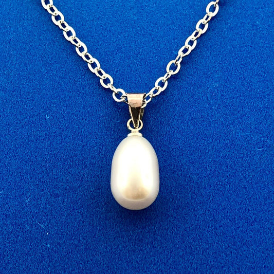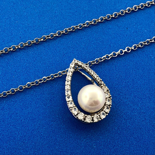 Designer Sterling Silver Pearl Diamond Bridal Perfect Pear Drop Pendant Necklace