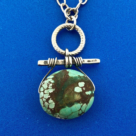 Vintage Artisan 925 Sterling Silver Oval Turquoise Bead Link Chain Necklace