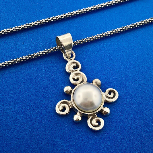Designer JM Sterling Silver Mabe Pearl Whimsical Swirl Snake Chain 19" Necklace