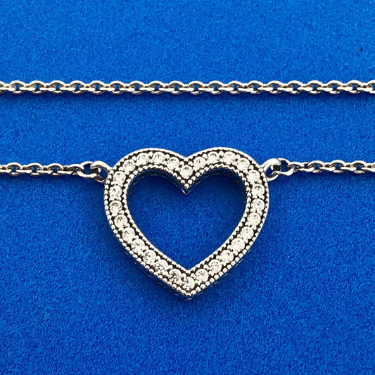 Designer PANDORA ALE Sterling Silver 925 CZ Sparkling Open Heart 17.5" Necklace