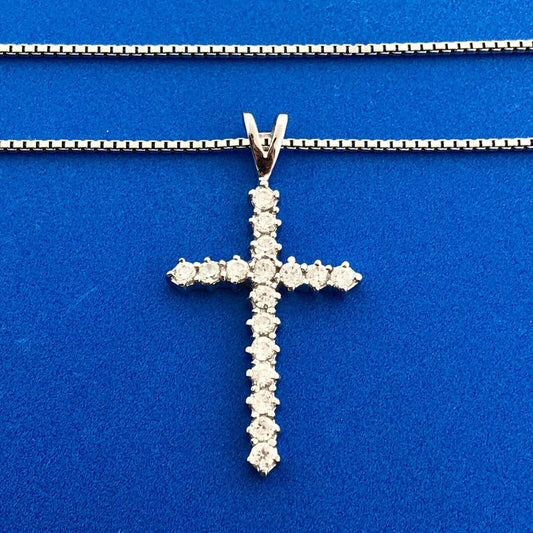 Stunning Sterling Silver 925 CZ Religious Faith 20" Box Chain Cross Necklace