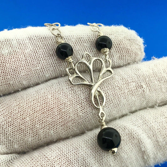 Stunning Sterling Silver 925 Onyx Bead Circle Link 20.5" Pendant Necklace