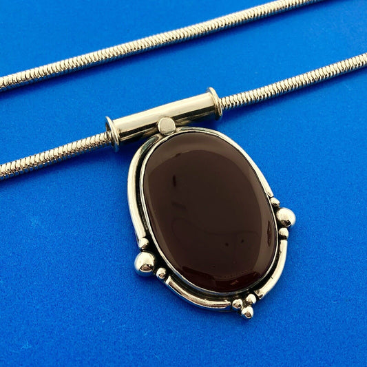 Stunning Sterling Silver 925 Cabochon Carnelian 18" Snake Chain Necklace