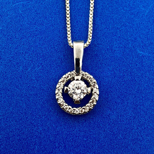 Sterling Silver Cubic Zirconia Solitaire Halo Infinity Bridal Necklace