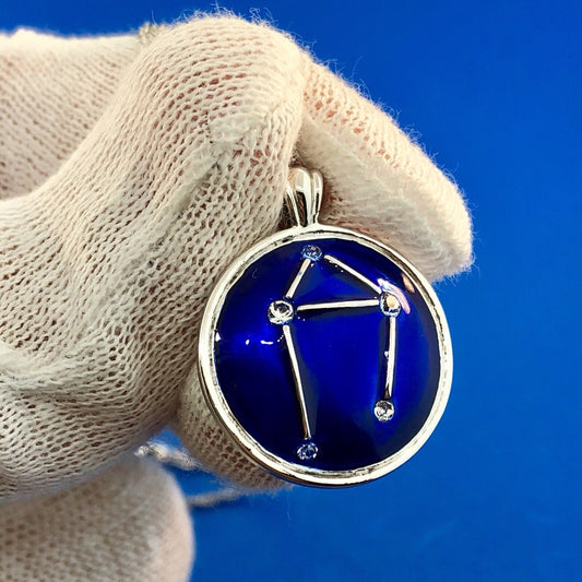 BGE Sterling Silver 925 Blue Enamel Cubic Zirconia LIBRA Constellation Necklace