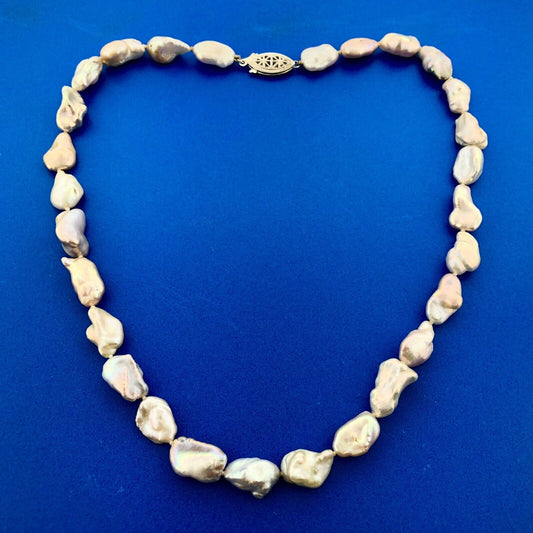 Vintage Sterling Silver Freshwater Pearl Gray Yellow Pink Cream Nugget Necklace